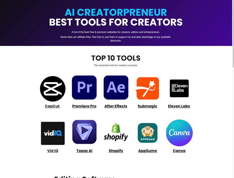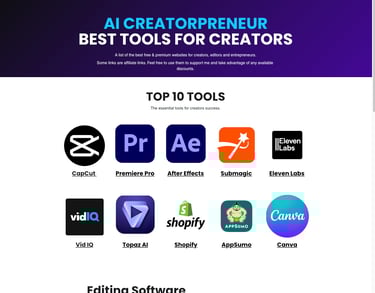 A list of the best free & premium AI Tools and software for creators, editors and entrepreneurs.