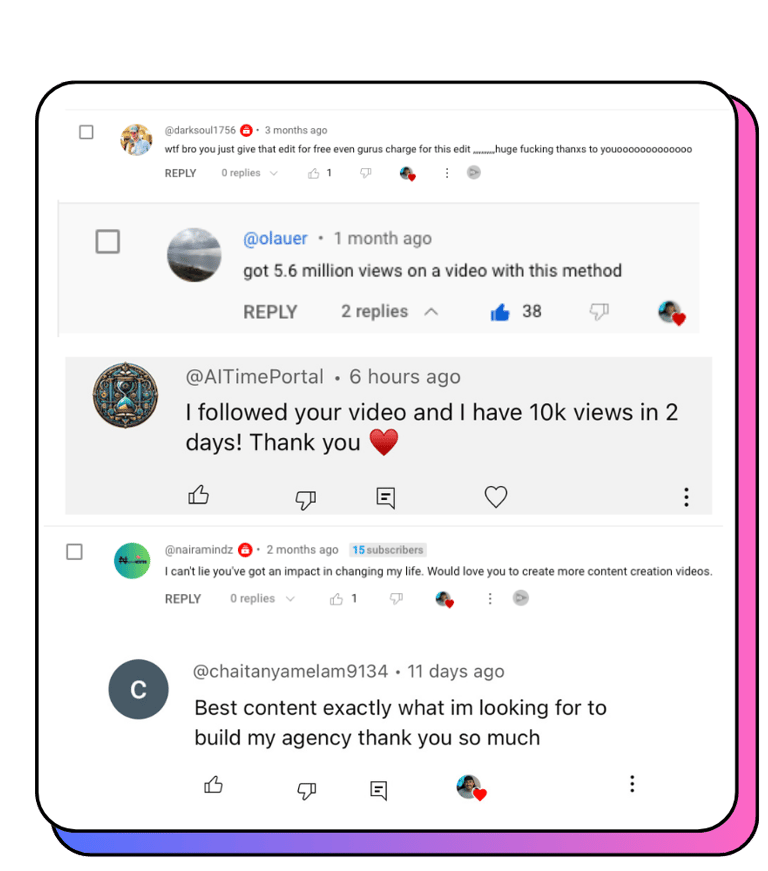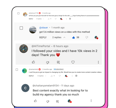 Testimonials from creators that joined the AI Creatopreneur Community or bought our products!